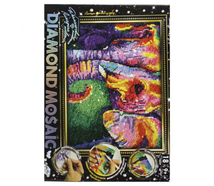 Набір творчої творчості "Алмазний живопис DIAMOND MOSAIC". На заготівлю нанесений липкий шар, який дозволить без клею закріпити стрази, а зручна нумерація страз робить роботу дуже простою та зрозумілою. Спеціальний олівець-аплікатор і пінцет, для захоплення та розміщення страз, допоможуть з легкістю розставити "алмази" по своїх місцях. Розмір картинки 30х20 см. Для дітей віком від 9-ти років.