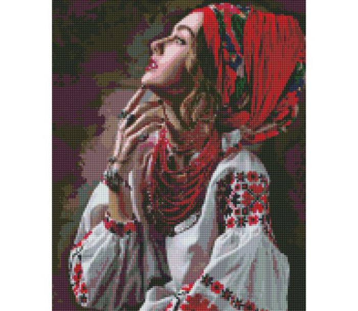 Комплектація: Полотно з клейовим шаром та кольоровою схемою, що оформлене на підрамник галерейним способом, акрилові стрази згідно комплектації набору, пінцет для страз, спеціальна ручка-стилус для роботи зі стразами, гель-клей, лоток для сортування страз, інструкція