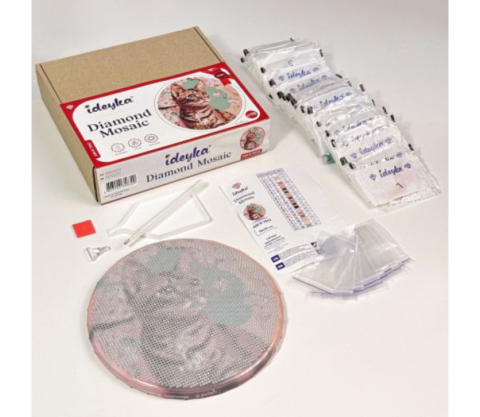 Викладення картин алмазною технікою є чудовим заняттям для зняття стресу, медитації та релаксу. Готові картини можуть прикрашати інтерʼєр, а також будуть гарним подарунком. Завдяки ефекту 5D, картини набувають дивовижного, чарівного обʼємного вигляду, який поглиблюється за допомогою огранювання кожного каменя. У наборі є: прогрунтоване полотно з клейовим шаром і кольоровою схемою, яке оформлене на підрамник галерейним способом; ручка-стилус з насадками та тримачем; гель-клей; лоток для стразів; стрази; інструкція. Діаметр виробу - 19 см.