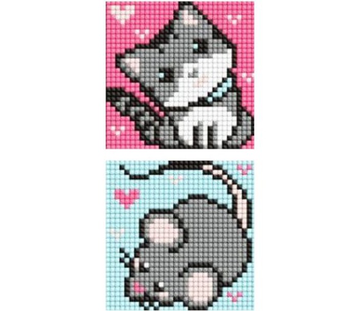 Комплектація: самоклеюча основа з клейовим шаром і кольоровою схемою - 2 шт, без підрамника; акрилові стрази згідно комплектації набору (круглі); спеціальна ручка-стилус для роботи зі стразами; гель-клей; лоток для сортування стразів; таблиця відповідності кольорів та символів (дивіться на звороті етикетки).