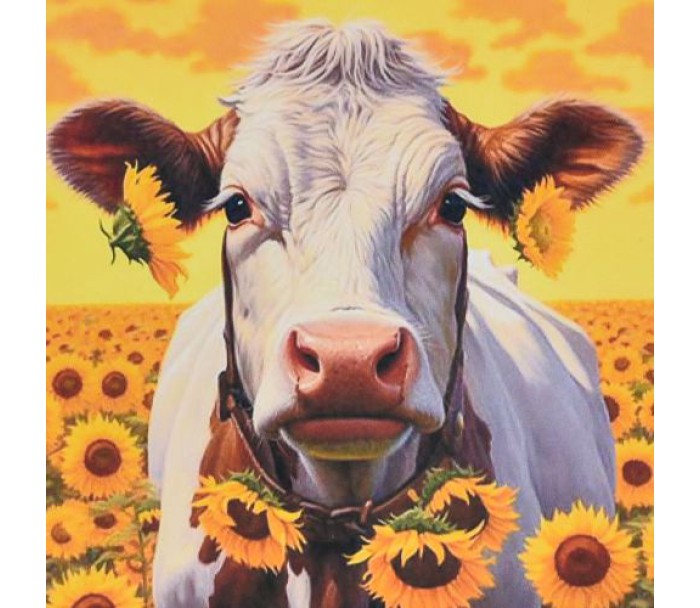 Алмазна мозаїка "Корова на тлі безмежної природи" 30х30 см