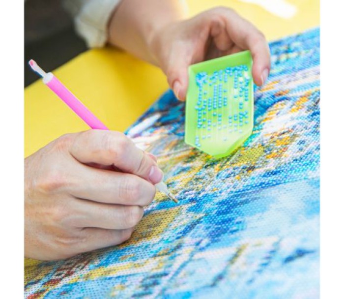 Викладення картин алмазною технікою є чудовим заняттям для зняття стресу, медитації та релаксу. Готові картини можуть прикрашати інтерʼєр, а також будуть гарним подарунком. Завдяки ефекту 5D, картини набувають дивовижного, чарівного обʼємного вигляду, який поглиблюється за допомогою огранювання кожного каменя. У наборі є: полотно з клейовим шаром та кольоровою схемою, яке оформлене на підрамник галерейним способом, акрилові стрази згідно комплектації набору, пінцет для страз, спеціальна ручка-стилус для роботи зі стразами, гель-клей, інструкція. Розмір: 40х50 см.