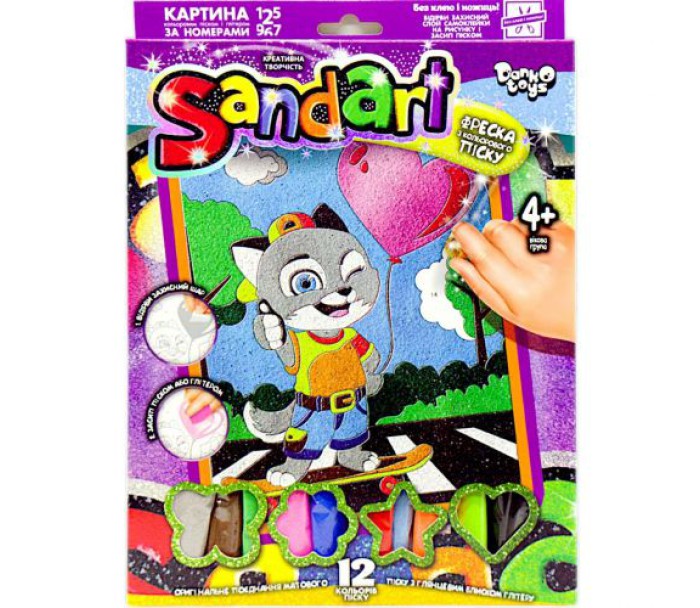 Комплектація: Картина-планшет, набір піску (12 кольорів), гліттерние блискітки, інструкція