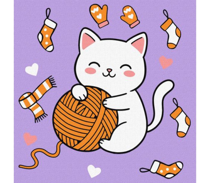 Картина по номерах для дітей "Котик і клубочок (картина №3)" 25х25 см