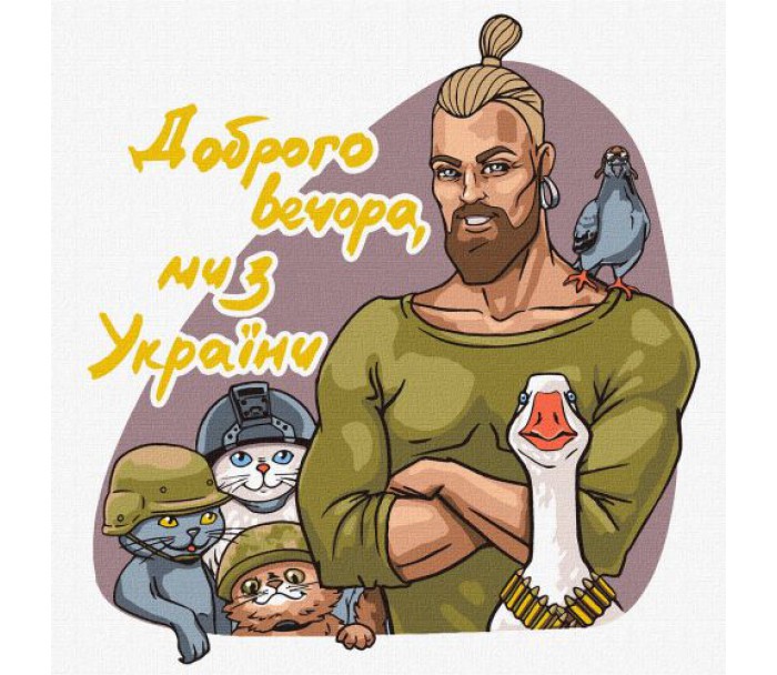 Комплектація: Полотно на підрамнику з галерейною натяжкою, паперова інструкція з контурним малюнком картини, нейлонові пензлі, палітра акрилових фарб у контейнерах, кріплення