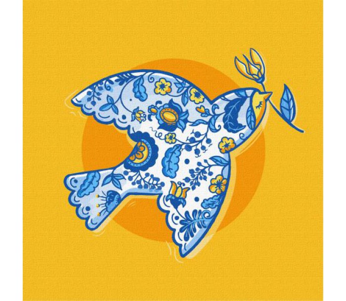 Комплектація: Полотно на підрамнику з галерейною натяжкою, паперова інструкція з контурним малюнком картини, нейлонові пензлі, палітра акрилових фарб у контейнерах, кріплення
