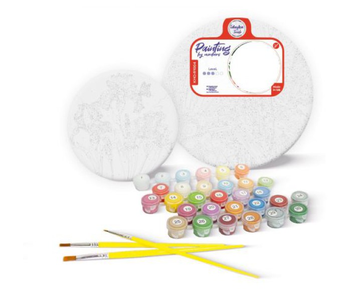 Для того, щоб намалювати картину, необхідно малювати за пронумерованими контурами, які відповідають кольору фарби. У наборі: натуральне полотно на підрамнику з галерейною натяжкою, паперова дублікат з контурним малюнком картини (на картині нанесена схема контурів зображення з нумерацією), 3 художні нейлонові пензлі, палітра акрилових фарб у контейнерах. Усі необхідні фарби вже в комплекті та не вимагають змішування. Діметр: 19 см.