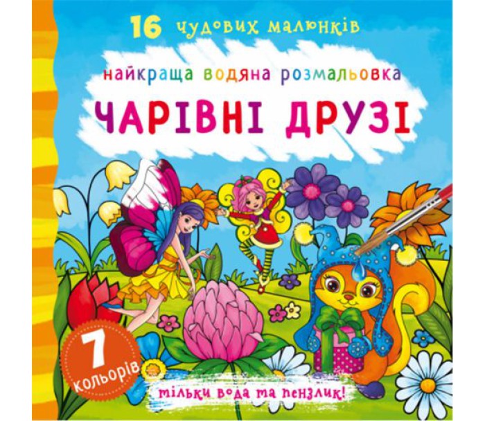 Водна розфарбування "Чарівні друзі". Всередині знайдете 16 чарівних малюнків. Щоб почати творити, потрібна тільки вода і пензлик.