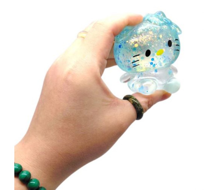 Яскрава жуйка-тягнучка для рук у вигляді персонажу всесвіту Санріо — Хелоу Кітті, підніме настрій як малюку, так і дорослому. Виконана із напівпрозорого силікону з блискітками. Іграшку можна стискати, розтягувати, а вона знову прийматиме свою початкову форму. Все завдяки специфічному гелеподібному наповнювачу. Розмір антистресу - 6х8х5 см. Виготовлено з якісних та безпечних матеріалів
