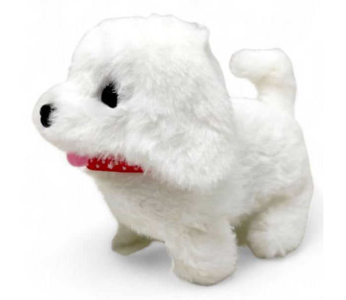 Мила пухнаста собачка, яка вміє бігати, гавкати і виляти хвостиком. Шерстка зроблена з дуже мʼякого і приємного на дотик матеріалу. А під шерсткою міцний пластиковий корпус. Іграшка стане чудовим другом малюку. Розмір іграшки: 16х14х8 см. Працює від 2 батарейок типу АА (немає в комплекті).