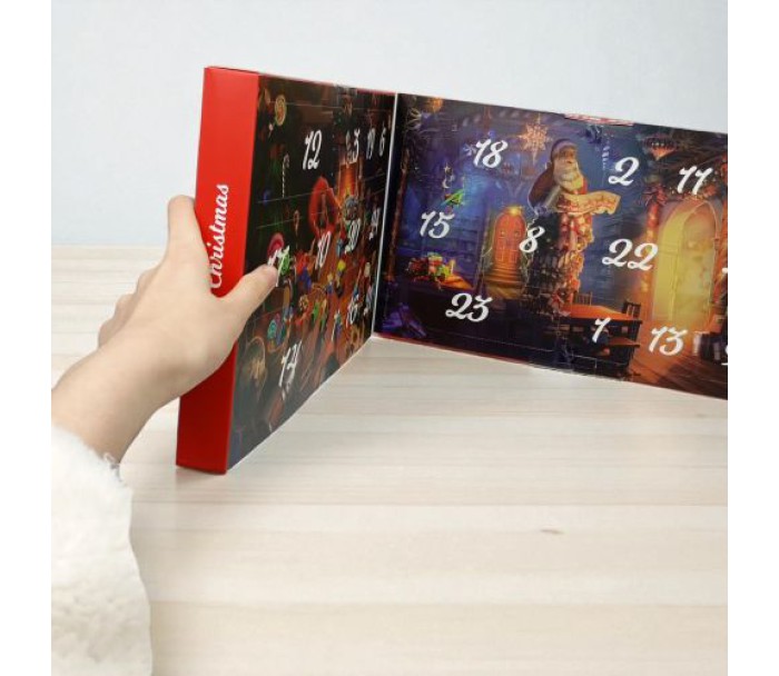 Адвент-календар 24 віконця, гумові фігурки, текстильні гномики, стоячі ялинки, в коробці