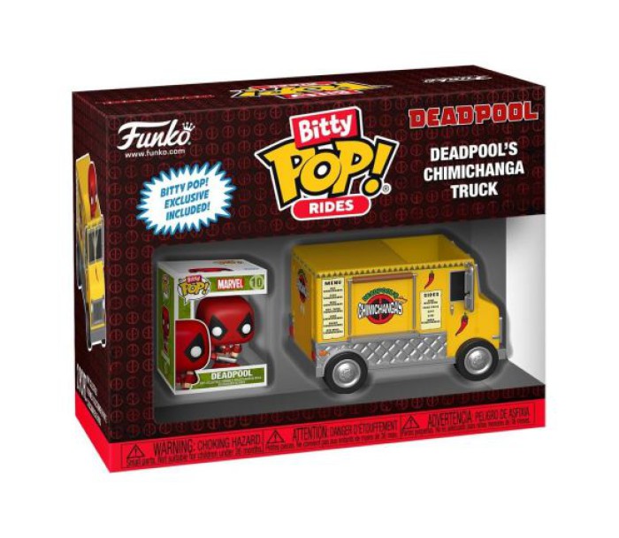 Набір фігурок BITTY POP! Ride – ДЕДПУЛ І ВАНТАЖІВКА ЧІМІЧАНГИ стане чудовим подарунком для шанувальників фільмів «Дедпул». Зустрічайте веселого Дедпула з цілою вантажівкою його улюбленої мексиканської страви - Чімічанги!