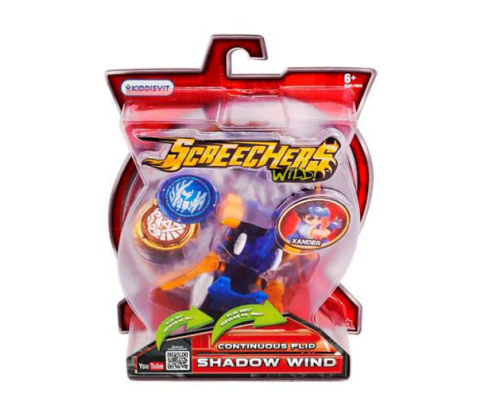 Screechers Wild - це перші в історії машинки, які роблять сальто на 360 градусів і трансформуються в дикого звіра прямо в повітрі. Скрічер Шедоу Вінд трансформується в крутого дракона. Для цього візьміть перший диск, зробіть перекид на 180 °, після цього захопіть другий диск і зробіть перекид на 360 °!Для того, щоб трансформувати тварину назад, потрібно витягти диски і закріпити пружинку знизу машини, і Ви знову можете вступати в бій. Диск має гладку поверхню для бездоганного ковзання і гумову поверхню для фіксації на місці. У наборі є машинка та 2 диски. Для дітей від 5 років.