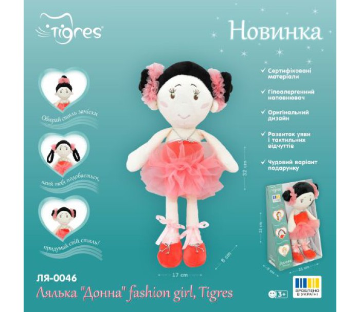Лялька м'яка Донна fashion girl, Tigres