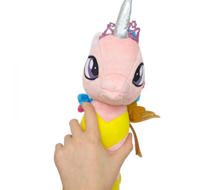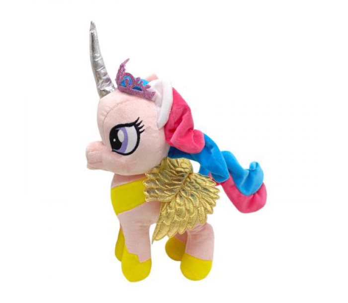 Чарівна мʼяка іграшка у вигляді поні-пегаса, виконана у стилістиці популярного мультсеріалу "My little pony" (Моя маленька поні). Крильця виконані з красивої блискучої тканини. Іграшка дуже мʼяка і приємна на дотик, якісна та міцна. Розмір – 25х26х10 см.