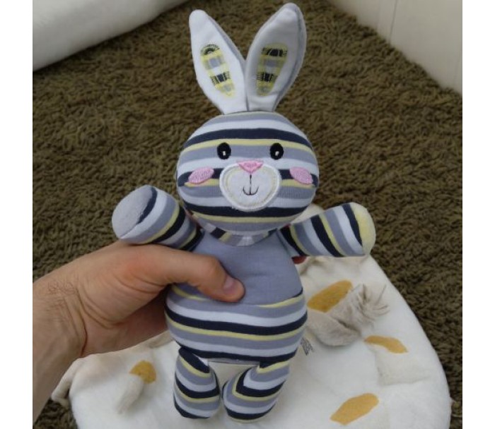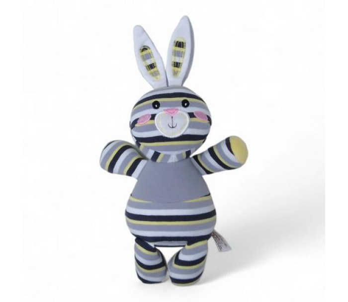 Мʼяка іграшка у вигляді кумедної тваринки (смугастого зайчика). Іграшка дуже приємна на дотик. Усі шви на ній міцні та надійні. Розмір - 22х10х8 см. Ігри з плюшевими іграшками чудово розвивають у малюка уяву, фантазію, сюжетно-образне мислення. Виконано з якісних та міцних матеріалів. Для діток старше 3-х років.