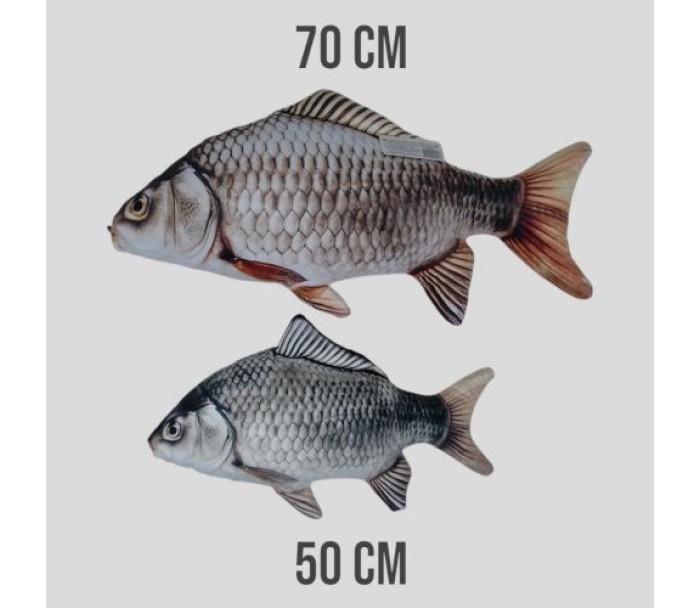 Велика мʼяка іграшка у вигляді карася завдовжки 50 см. Реалістичний та деталізований дизайн робить її незвичайним подарунком, елементом декору або іграшкою для дітей. Мʼякий матеріал забезпечує комфортне використання, а великий розмір додає унікальності іграшці.
