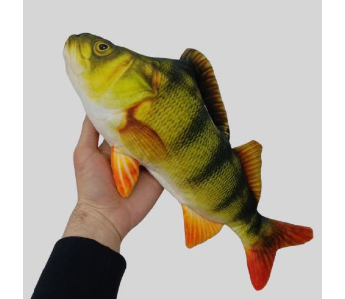 Мʼяка іграшка у вигляді окуня – це реалістична та кумедна іграшка, яка сподобається як дітям, так і дорослим. Яскраве забарвлення, деталізовані плавники і приємний на дотик матеріал роблять її чудовим подарунком для любителів риболовлі та природи. Іграшка виконана з мʼякого та безпечного плюшу, а наповнювач забезпечує приємну пружність. Відмінний вибір для обіймашок, декору чи веселих ігор!