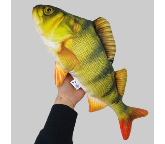 Мʼяка іграшка у вигляді окуня – це реалістична та кумедна іграшка, яка сподобається як дітям, так і дорослим. Яскраве забарвлення, деталізовані плавники і приємний на дотик матеріал роблять її чудовим подарунком для любителів риболовлі та природи. Іграшка виконана з мʼякого та безпечного плюшу, а наповнювач забезпечує приємну пружність. Відмінний вибір для обіймашок, декору чи веселих ігор!