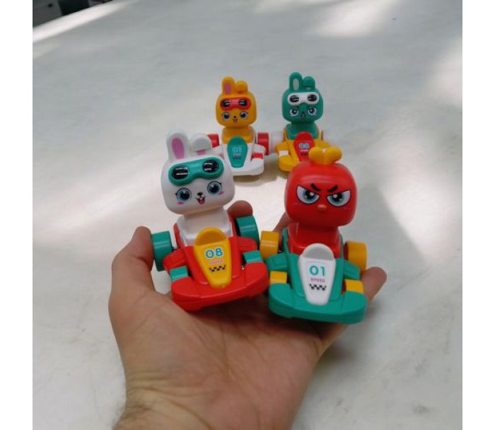 Яскрава дитяча іграшка у вигляді гоночної машинки з милим пілотом - зайчиком чи курчам! Ця іграшка обовʼязково приверне увагу дітей. Просто натисніть на голову пілота, відпустіть, і машинка швидко попрямує вперед, забезпечуючи безліч веселих моментів і захопливих гонок. Розмір – 8 см.