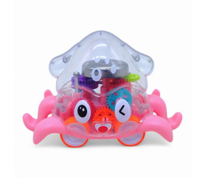 Захоплива інерційна іграшка виконана у вигляді чарівного морського мешканця, який пересувається на колесах. Прозорий корпус дає змогу побачити внутрішні механізми, де обертаються шестерні, створюючи захоплюючий ефект. Іграшка оснащена світловими ефектами, які додають магії в гру, та дзвіночком, що видає приємний звук під час руху.