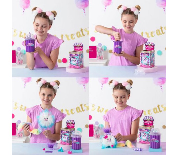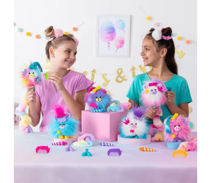 Знайомтеся з милими улюбленцями, які створені з іграшкової цукрової вати. Вони такі пухнасті, з довгим хвостиком - ідеально підходять для обіймів. У кожного улюбленця приємний аромат і індивідуальні аксесуари. Відкрийте: зніміть кришечку з пакувальної капсули. Легким рухом запʼястя розкрутіть іграшковий ріжок, щоб дістати свого пухнастика з іграшкової цукрової вати. Познайомтеся: дістаньте пухнастого улюбленця з пакування та подивіться, кого Ви отримали, розгорнувши хвостик з іграшкової цукрової вати навколо тіла персонажа. За допомогою гребінця та аксесуарів, Ви можете прикрасити пухнастого улюбленця. До набору входить: 1 мʼяка іграшка, гребінець, пара взуття, накладне волосся, 2 аксесуари.