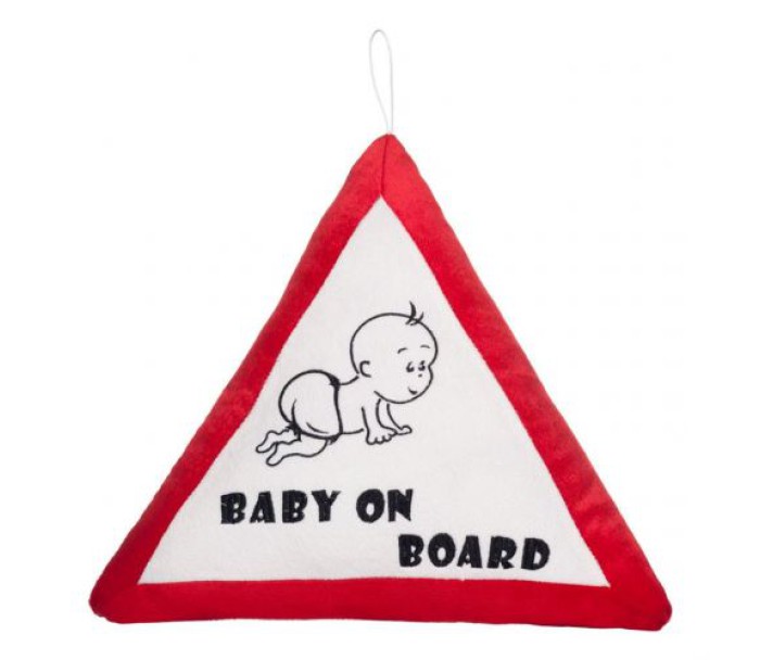 Подушка "Малюк". Дизайн подушки виконаний у вигляді дорожнього знаку-трикутника з малюнком малюка і написом "Baby on board" - "Малюк в машині". Дуже барвиста і приємна на дотик. Оснащена петелькою, за яку подушку можна буде підвісити в автомобілі. Склад: 100% поліестер. Розмір подушки: 38 х 38 см.