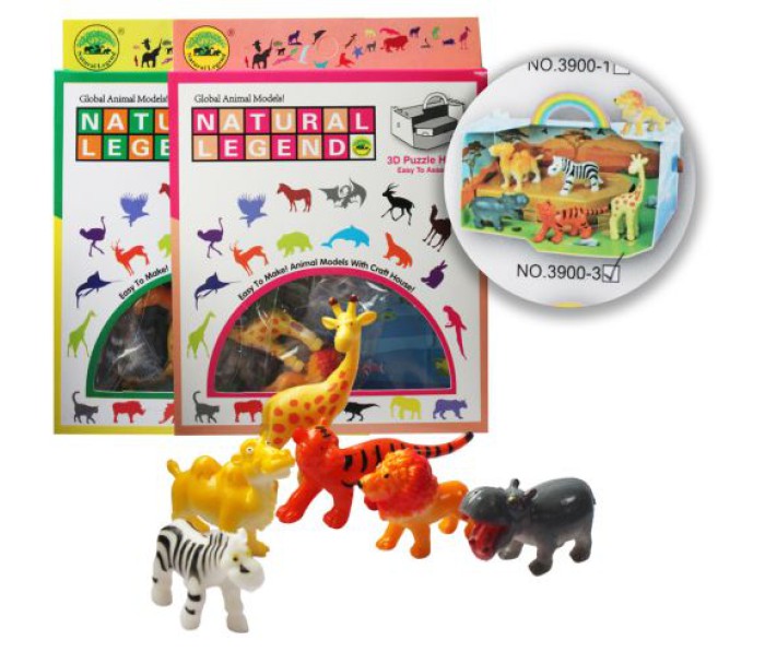 Дитячий ігровий набір, в який входить 6 фігурок тварин та двосторонні картонні декорації, з яких можна скласти коробочку розміром 15х7х9 см. Фігурки можна розмістити всередині коробочки та розігрувати різні сценки. Розмір однієї фігурки: приблизно 3 см.