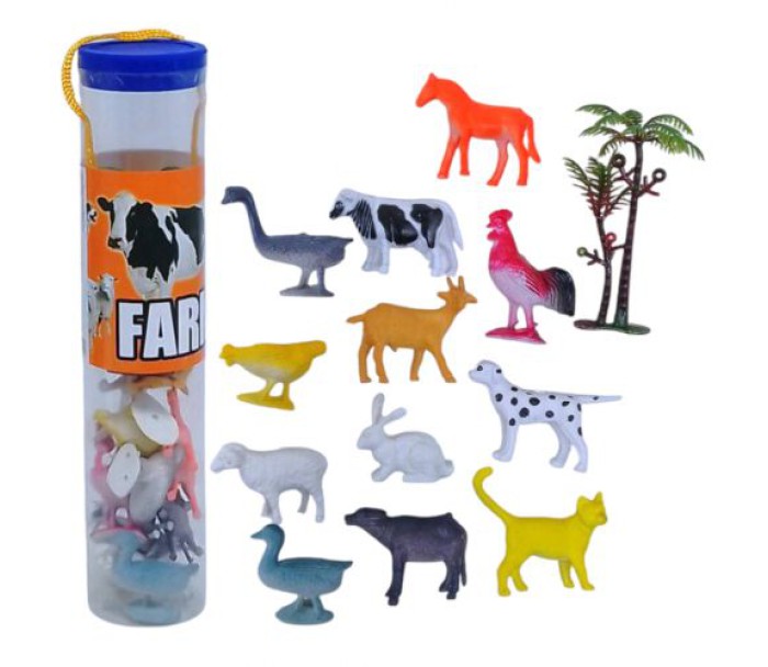 Набір із 12 фігурок тварин, виконаних із щільної гуми, з декоративним деревом у комплекті. Фігурки мають невеликий розмір та ідеально підходять для декорування або гри. Відмінний додаток до інтерʼєру або ігрового куточка. Розмір – 4-5 см. У прозорій колбі.
