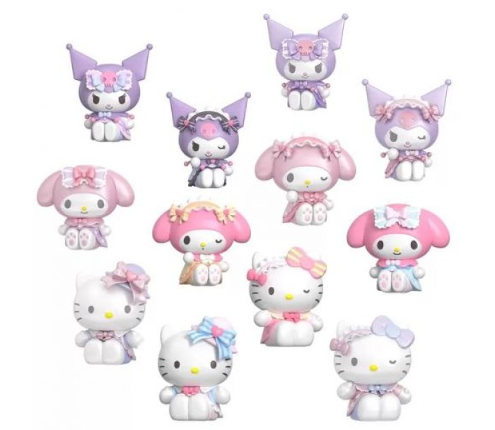 Уявіть собі країну, де кожен ранок починається з посмішки, а кожна зустріч — це маленьке диво, саме там живуть герої Sanrio, які запрошують вас у світ ніжності, дружби та яскравих пригод! Улюблені герої Hello Kitty, My Melody і Kuromi постають у новому образі — ніжних сукнях і з чарівними деталями. Відкрийте витончений світ Sanrio разом з колекцією елегантних панянок! Розмір іграшки — близько 4 см. У серії представлено 18 унікальних фігурок із різними образами: Hello Kitty, My Melody, Kuromi. Збирайте, обмінюйтесь, створюйте власні історії — і нехай кожна фігурка стане початком нової казки!
