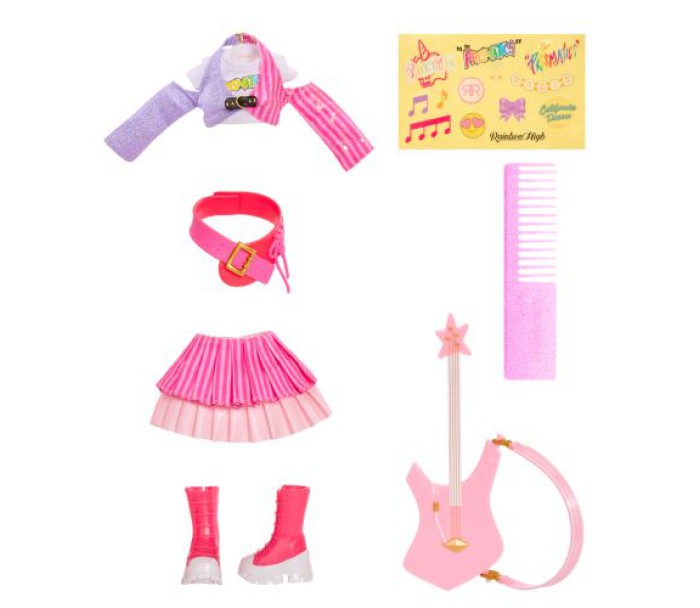 Зустрічайте нову серію RAINBOW HIGH «Junior High Rockband» — гурт, що диктує ритм не лише в музиці, а й у моді! Чотири молодші версії улюблених героїнь збираються разом, щоб створити власний гурт: з гітарами, мікрофонами та вибуховим настроєм. Від репетицій до справжніх концертів — шоу триває, а ваша уява задає ритм! Зберіть їх усі та створіть свою модну та стильну веселку!