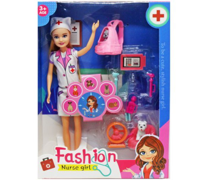 Набір включає ляльку, одягнену в професійний костюм ветеринара, а також все необхідне приладдя для піклування про тварин. У комплекті ви знайдете рюкзачок-перенесення з милим песиком усередині, песика на зручній лежанці, хомʼячка, який весело крутиться в колесі, і планшет лікаря для записів про здоровʼя вихованців. З цим набором діти можуть розігрувати різні сценарії ветеринарної практики, навчаючись піклуватися про тварин та розвиваючи свої навички в ігровій формі.