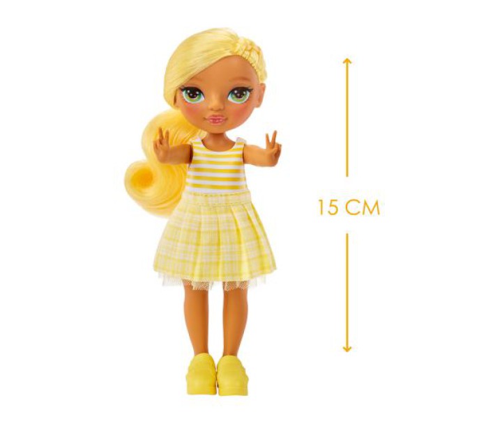 Лялька Rainbow High серії Littles - Дейзі - стильна красуня з волоссям і одягом яскравого жовтого кольору. У ляльки довге розкішне волосся, яке можна розчісувати та створювати різні зачіски. Висота ляльки - 15 см. У комплекті також є милий улюбленець з ефектом кристала. Рекомендовано для дітей віком від 4 років.