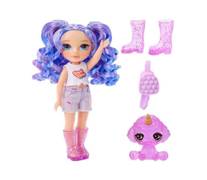 Лялька Rainbow High серії Littles - Аметиста - стильна красуня з волоссям і одягом ніжного лілового кольору. У ляльки довге розкішне волосся, яке можна розчісувати та створювати різні зачіски. Висота ляльки - 15 см. У комплекті також є милий улюбленець з ефектом кристала. Рекомендовано для дітей віком від 4 років.