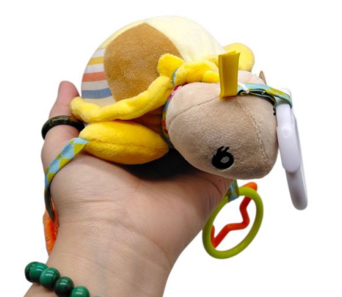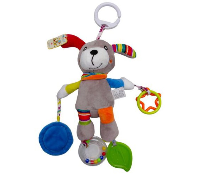 Це миле брязкальце виконано у вигляді кумедної тварини й має приємну на дотик текстильну поверхню. Прорізувач допомагає під час прорізування зубів, а люстерко зацікавлює і стимулює зорове сприйняття. Завдяки пластиковому кріпленню тваринку зручно закріпити на ліжечку, візочку або автокріслі. Іграшка сприяє розвитку дрібної моторики, слухового та зорового сприйняття і підходить для дітей від 6 місяців. Приблизна висота з урахуванням кріплення: 28 см. Рекомендовано для дітей від 6 місяців. Виготовлено з якісних та безпечних матеріалів.
