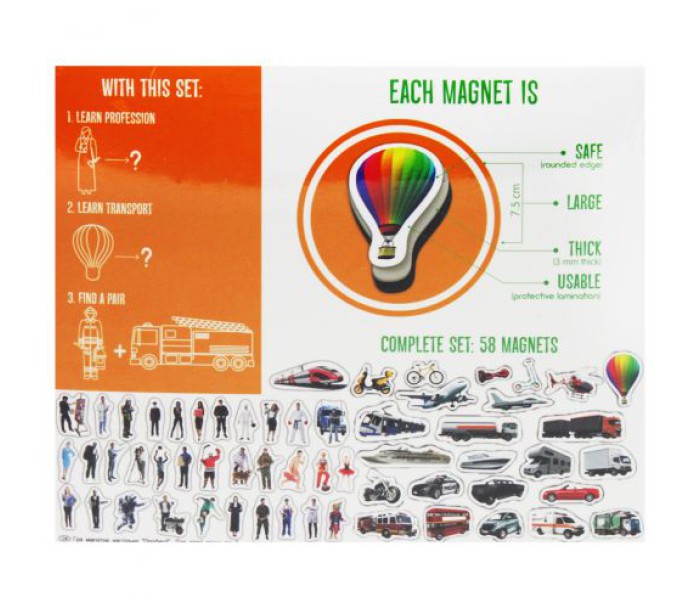 Набір магнітів "Професії" буде гарним подарунком для дитини. У комплекті є 58 різних магнітиків з зображеннями тієї чи іншої професії. Виконано з якісного і безпечного матеріалу.