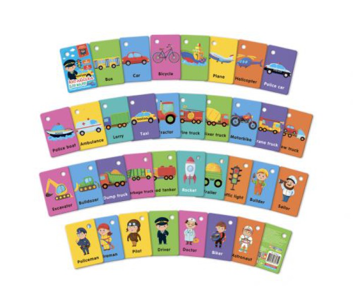 Вивчайте разом із малюком англійські слова та розглядайте яскраві ілюстрації до них. Виконуйте разом цікаві завдання. Набір складається з 18 двосторонніх карток на пластиковому кільці, яке можна прикріпити до ліжечка або коляски, або просто тримати в руці.