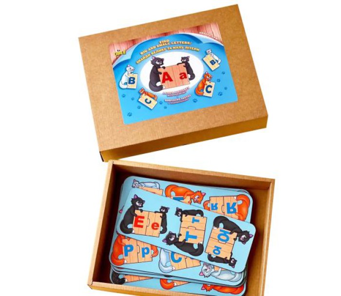 Деревʼяний ігровий набір, який допоможе малюкові навчитися розрізняти великі та маленькі літери. У комплекті є міні-пазли із літерами українського алфавіту, прикрашені чарівними котиками. Загалом у наборі 66 елементів. Виконано з якісних та екологічно-чистих матеріалів. Для дітей віком від 3-х років.