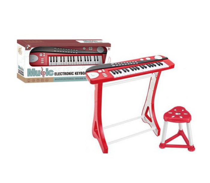 Дитячий синтезатор зі стільчиком це музичний інструмент, який працює від батарейок і підійде для дитини віком від 3-х років. Завдяки стильному дизайну та цікавому функціоналу цей синтезатор стане чудовим подарунком для будь-якої дитинки. Піаніно має три октави, на яких дитина зможе вивчати дитячі прості пісеньки. Не є професійним інструментом для занять музикою, але дуже чудово впорається з початковими задачами. Основні характеристики: 37 чорно-білих клавіш; має вже записані мелодії і 8 ритмів; регулювання звуку; функція запису мелодій; яскравий дизайн. Синтезатор розміщено на стійких підставках. У комплекті є стілець. Розмір клавіш не відповідає реальним розмірам клавіш синтезатора чи фортепіано.Розмір піаніно 63 х18х64 см.; розмір стільця 30,5х25х25 см. Висота піаніно – 63 см, висота стільця – 28 см.