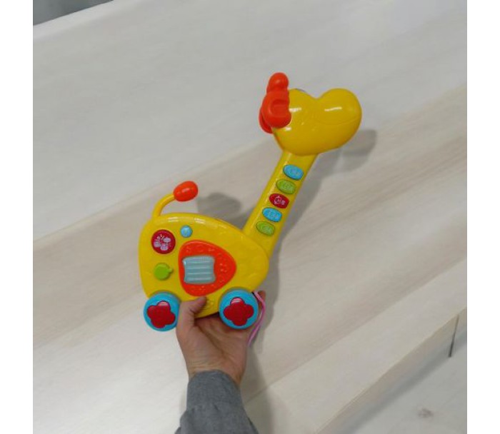 Дитяча іграшка 2 в 1: гітара та каталка у вигляді веселого жирафа - це універсальна розвага для малюків! Вона відтворює мелодії, звуки барабана, ноти та звуки тварин, що сприяє розвитку слуху та музичного сприйняття. Яскраве підсвічування привертає увагу дитини, роблячи гру ще більш захопливою. Працює від 3-х батарейок АА (немає в комплекті).
