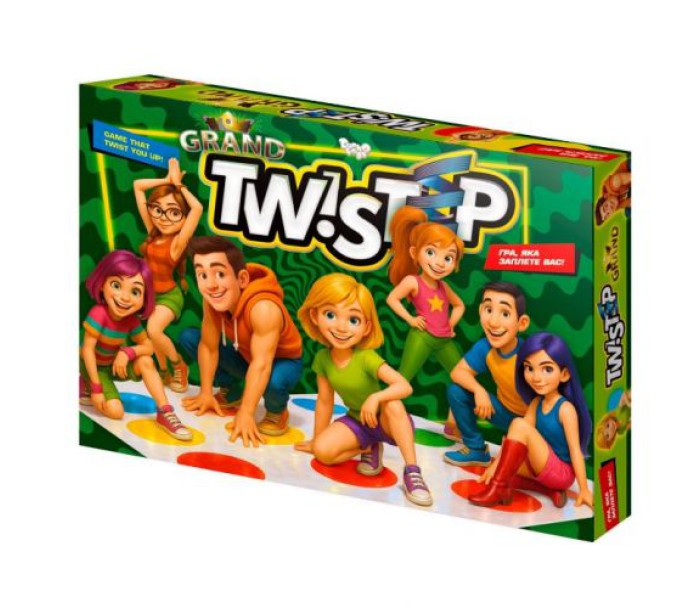 "GRAND Твістеп" - це захоплива гра, що допоможе вам розвинути спритність, гнучкість та відчуття рівноваги. За допомогою величезного ігрового поля (1800*1300 мм), у грі можуть брати участь від 2-х гравців до 4-х, або навіть більше, якщо їх можна втиснути. А якщо не можна, то просто треба поділитися на команди, та грати по-черзі!