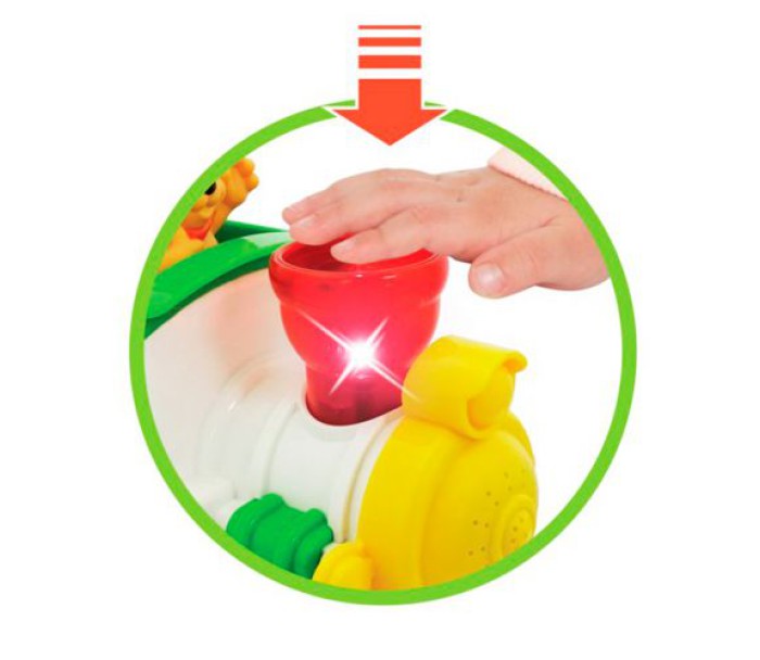 - При натисканні фігурка тварини видає відповідний реалістичний звук, розповідає віршик, а Лев-машиніст співає пісеньку.
