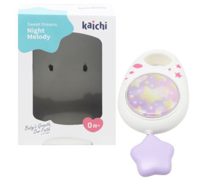 Музична іграшка - з милою картинкою та приємною мелодією. Розмір - 13х9х3, 5 см. Виконаний з якісного та міцного пластику. Для відтворення мелодії необхідно потягнути за зірочку, іграшка працює від заводного механізму. Граючи мелодію на механізмі крутиться картинка із зірками. На задній панелі іграшки розміщені мотузочки, за допомогою яких її можна підвісити на ліжечку.