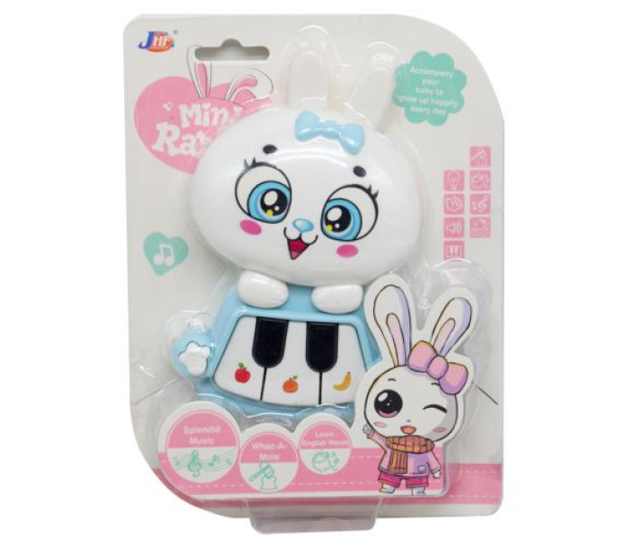 Музична іграшка-піаніно для малюків. Є 4 кнопки, які видають звуки різної тональності. Іграшка має мʼяке кольорове підсвічування, яке вмикається і вимикається при натисканні на ліву лапку. Кнопкою на правій лапці можна змінювати режими гри: вивчення англійських слів, звуки з мультфільмів і програвання різних мелодій. Працює від 2-х батарейок типу АА. Розмір: 15.5х10 см.