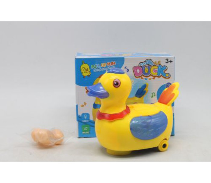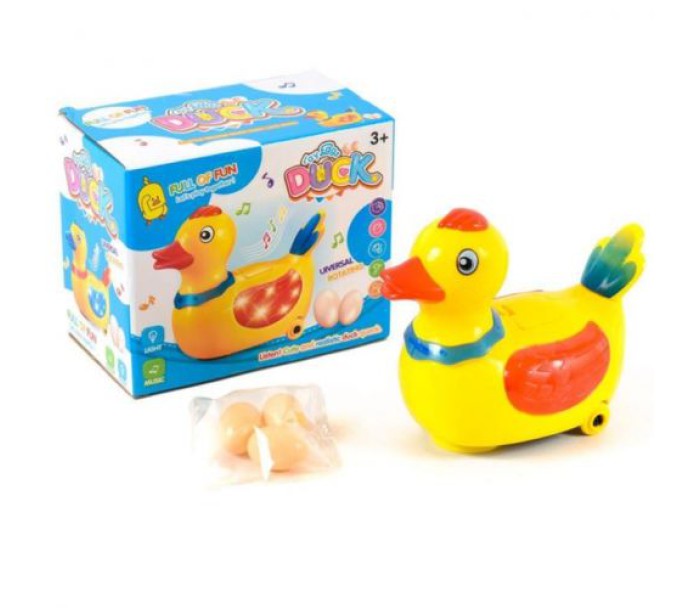 Оригінальна музична іграшка у вигляді качечка, яка вміє нести яйця. При включенні качка починає співати пісеньку, світитися та їздити у довільних напрямках. Щоб вона знесла яйце, потрібно помістити пластикове яєчко у спеціальний відсік у пташки на спині. Під час їзди у качки відчиняться дверцята ззаду і яйце викотиться назовні. Музична. Розмір іграшки: 16 х 9 х 13 см.