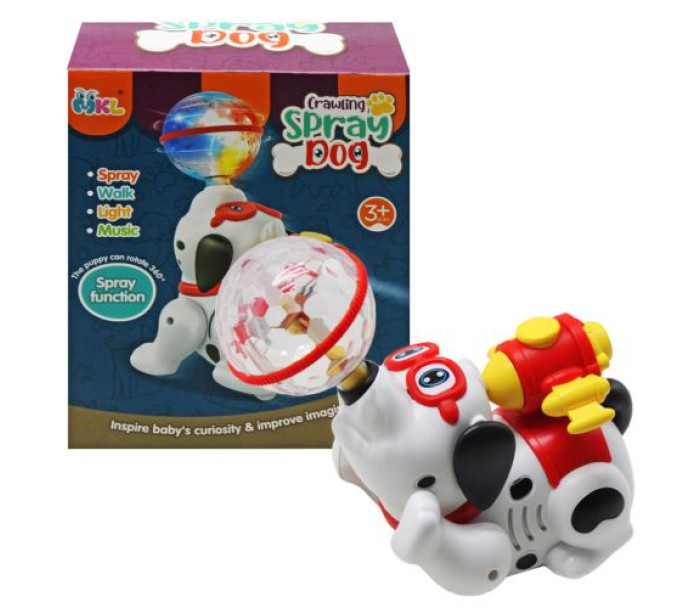 Весела і незвичайна іграшка у вигляді песика з рюкзаком-турбіною та мʼячиком на носі. Іграшка ходить, обертає мʼячик і обертається сама. З турбіни йде дим (пар). Для цього потрібно залити воду у спеціальний резервуар. Грає музика, яскраве 3D світло. Два режими: в одному песик ходить, а в іншому стоїть на місці (але при цьому є всі ефекти). Працює від 3-х батарейок АА (немає в комплекті).