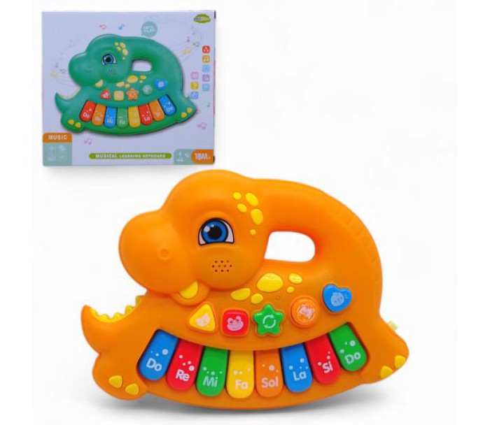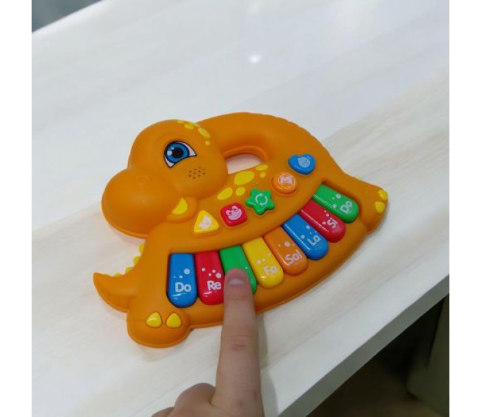 Дитяче піаніно у вигляді динозаврика - це цікава іграшка, яка перетворює навчання на гру! Іграшка поєднує функції: програвання мелодій, вивчення нот і відтворення звуків тварин. Особливістю піаніно є можливість створювати музику з використанням кумедних звуків тварин прямо на клавішах. Іграшка яскрава, компактна та ідеально підходить для перших кроків дитини у світ музики.