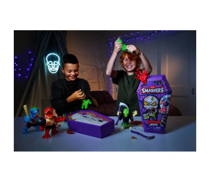 Поринь у моторошну пригоду разом зі Smashers Horror House! Розбий, викопай та розбери монстра, щоб оживити його. Всередині на тебе чекає більше 15 сюрпризів! Чи вистачить тобі сміливості відкрити труну та знайти свого монстра? Збирай, будуй та готуй їх до битви – колекціонуй їх усіх!