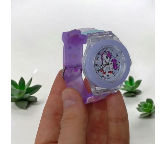 Цей дитячий годинник - це елегантний аналоговий годинник. Годинник має зручний силіконовий ремінець з яскравим дизайном. Натиснувши кнопку на самому годиннику, можна активувати два різних типи підсвічування у кольорах веселки. Продукт доступний у 2 колірних варіантах.
