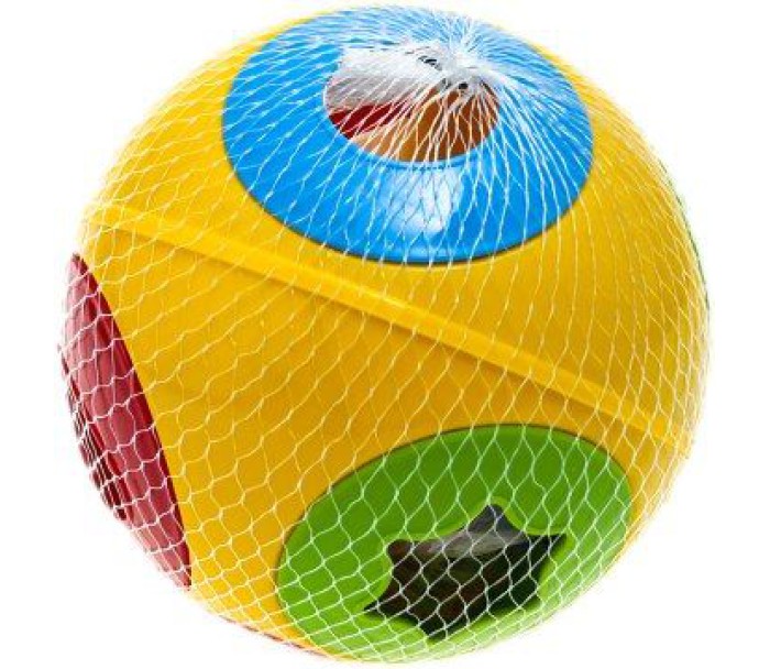 Шар-сортер. Складається з двох основних складових - це ємність з отворами різної форми і розміру, а також кілька фігурок-вкладишів (6 геометричних фігур), кожна з яких відповідає якомусь одному отвору.